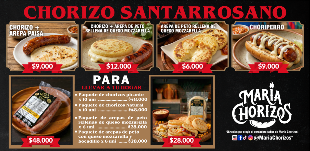 Deseo adquirir una franquicia "La Franquicia de Alimentos #1 en Rentabilidad" NUESTROS PRODUCTOS Chorizo Original Santarrosano con Pan Artesanal, salsa de la casa y Chimichurri Chorizo Santarrosano con Arepa Paisa Arepa de Peto Rellena de Queso mozarrella Con el Autentico Chorizo Santarrosano Arepa de Peto Rellena de Queso Mozarella y bocadillo natural Paquete x 10 Chorizos Santarrosanos ( picantes ó Tradicionales) Listos para tu próximo Asado Arepa de Peto Rellena de Queso Mozarella y bocadillo natural Arepa de Peto Rellena de Queso Mozarella, Autentica y realmente irresistible, solo quienes la han probado lo pueden asegurar Arepa de Peto Rellena de Queso Mozarella y bocadillo natural Paquete x 10 Chorizos Santarrosanos ( picantes ó Tradicionales) Listos para tu próximo Asado Chorizo Santarrosano con Pan artesanal, Salsa de ajo y Chimichurri Chorizo santarrosano con arepa de Peto Rellena de Queso Mozarella. Chorizo Santarrosano con arepa paisa tradicional. CHORIZOS VENDIDOS EN COLOMBIA 1.695.423 valor sincronizado minuto a minuto con nuestros puntos de venta a nivel nacional